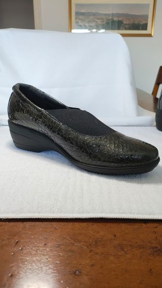 Enval Ballerine 6938 Come vedete dalla suola, mai usate. Prezzo su mercato: 70€ Tomaia in materiale effetto pelle di serpente Dettaglio elastico sul collo del piede Fodera: tessuto Soletta: pelle Plantare: removibile Fondo: gomma Zeppa: 3,5 cm Calzata: regolare Taglia 7 Taglia 39