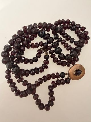 collana anni ‘70 in vero granato sfaccettato,con chiusura in metallo dorato e granato centrale