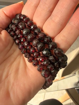 Elegante collana a due fili con perle di granato sfaccettate. - Perle di granato rosso scuro. - chiusura vintage con granato incastonato - Design a doppio filo.