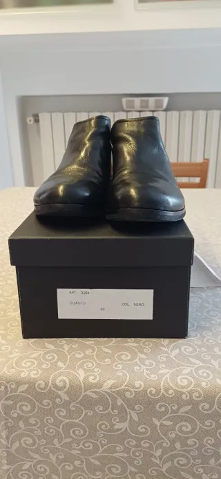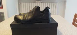 Scarpa nera in pelle stile mocassino con cerniera e bottone posteriore. Taglia 40.