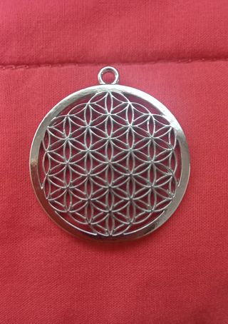 Elegante ciondolo con il simbolo del Fiore della Vita. Un accessorio dal design raffinato. - Motivo geometrico intricato. - Anello per aggancio.