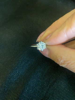 Elegante anello con zircone centrale. - Montatura in metallo argento - Zircone bianco brillante.