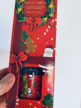 Diffusore di essenza per la casa a tema natalizio. nuovo idea regalo di Natale 🎁🎅🏻 - Fragranza: Vaniglia e Cannella. - Design: confezione con Decorazioni natalizie con Babbo Natale e pan di zenzero. - Made in Italy.