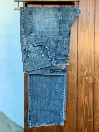 Jeans originali Jeckerson da uomo, brand di qualità. Denim Délavé effeto Vintage, con design a toppe frontali e iconico logo golfista ricamato. Buono stato. Presentano il normale e naturale scolorimento del denim Controllare le foto Made Italy Ottimo jeans di marca, pronto per una seconda vita! Jeans Straight Fit (Taglio Dritto) / Relaxed Fit. Taglia 38 Vestibilità taglia 52 Controllate le misure qui sotto. Misure: Larghezza da fianco a fianco cm 48 Lunghezza cavallo davanti cm 29 Lunghezza cavallo dietro cm 43 Lunghezza totale (vita + gamba) cm 103