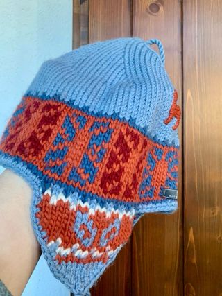 Cappello/Berretto nuovo con paraorecchie, stile peruviano, caldissimo! Perfetto per la neve ❄️ o il freddo intenso. • Materiale: Probabile Lana di Alpaca/Misto Lana (Marca Machu Picchu). • Stile: Trama jacquard colorata (Azzurro, Arancione, Rosso). Con simpatici laccetti. • Condizioni: NUOVO! Mai indossato. • Unico: Un vero tocco di stile per l'inverno! Unisex