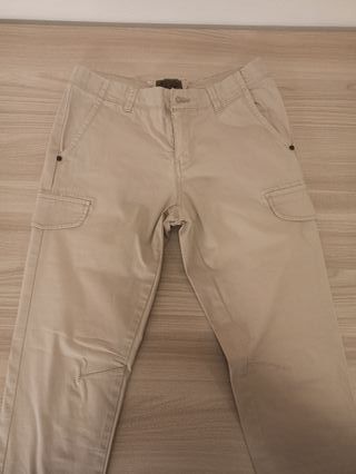 Pantaloni cargo da donna, colore beige con tasche.