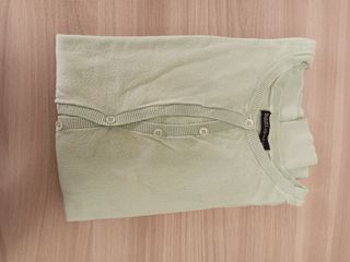 Golfino in maglia color verde acqua, con chiusura a bottoni. - Maniche lunghe. - Scollo rotondo. - Bottoni tono su tono.
