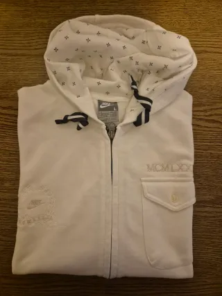 Felpa con cappuccio Nike, un capo comodo e versatile. - Logo Nike ricamato sul petto. - Dettaglio MCMLXX ricamato. - Tasca frontale con bottone. - Interno cappuccio con fantasia a croci.