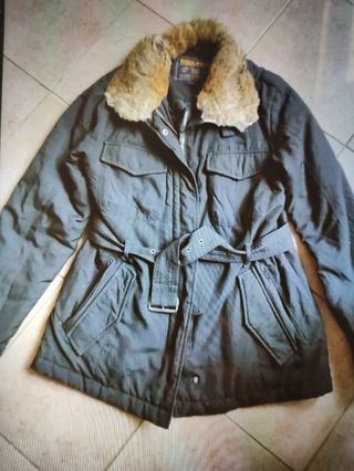 Giubbotto invernale Woolrich indossato solo un paio di volte. - Colore verde oliva. - Cappuccio con pelliccia. - Chiusura con zip e bottoni.