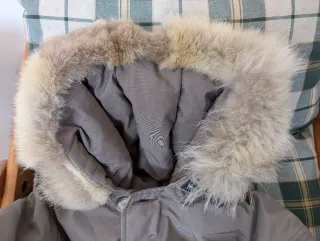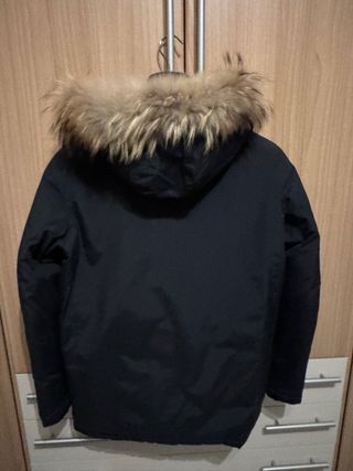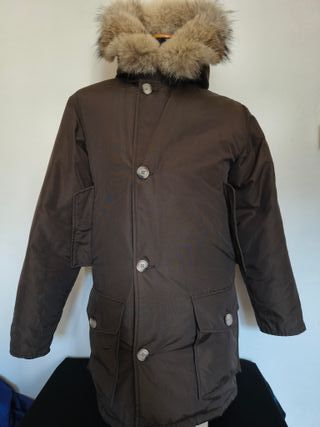 Parka Woolrich John Rich & Bros. originale. Cappuccio in pelo naturale di coyote (le nuove versioni sono in pelo sintetico). Modello Arctic Parka con imbottitura in piuma e cappuccio con pelo naturale di coyote canadese rimovibile. Utilizzo molto limitato. Ottime condizioni. Conservo le etichette. Imbottitura in piuma d'anatra 70%. Trattamento Teflon idrorepellente. Parka molto caldo e di grande qualità.
