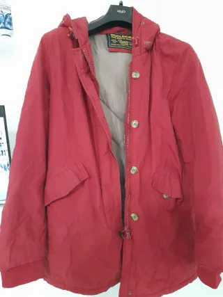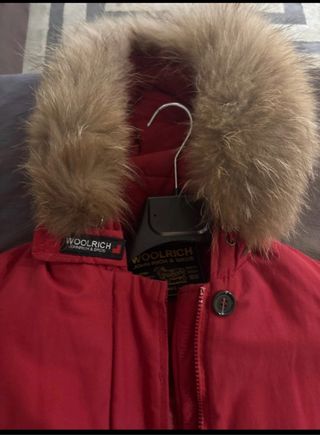 Giacca invernale Woolrich in un vivace color rosso. Presenta un cappuccio bordato di pelliccia sintetica per un tocco di calore e stile. - Dettagli con zip e bottoni. - Tasche frontali con patta. - Polsini e fondo a costine. Unico difetto cerniera si chiude ma è da cambiare