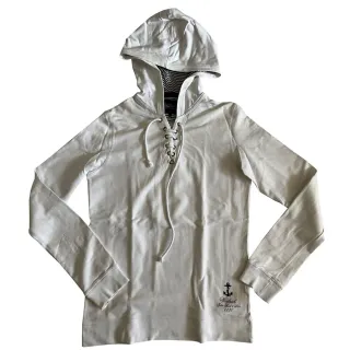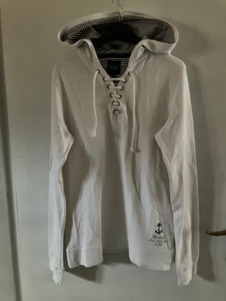 Felpa con cappuccio in cotone elasticizzato leggero quattro stagioni bianco. Spalla 41 cm, torace 51 cm, lunghezza 70 cm, manica 71 cm.