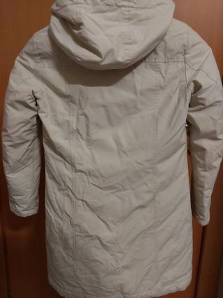 Woolrich parka con cinta in vita, tasche superiori e due tasche inferiori, dotato di cappuccio, collo staccabile. Perfette condizioni, usato pochissimo .