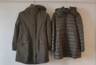 Elegante piumino da donna Woolrich in un raffinato color verde oliva composto da due giacche che possono essere utilizzate entrambe separatamente. Un capo versatile e caldo. - Design trapuntato. - Cappuccio integrato. - Chiusura frontale con zip.