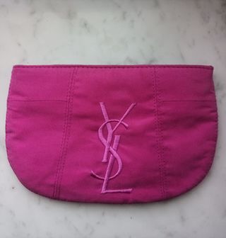 bellissima pochette colore azzurro Yves Saint Laurent mai utilizzata, 100% originale come da logo in foto, ancora con pellicola nello specchietto. Si tratta di una pochette/trousse da trucco, ma può essere utilizzata come borsetta poiché molto capiente (25 cm di lunghezza circa). In regalo con la pochette una maschera per il viso biologica.