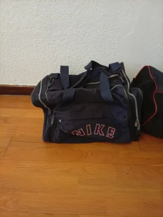 Set di due zaini sportivi del marchio Nike. - Zaino nero con logo NIKE in rosso. - Zaino nero e grigio con logo Nike rosso. - uno è uno zaino vintage ma in perfette condizioni.