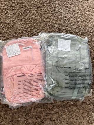 In vendita due zaini, uno in colore beige e l'altro in colore nero. Ideali per l'uso quotidiano o per viaggi brevi. Design moderno e funzionale. Scomparti esterni per facile accesso. Cinghie regolabili per maggiore comfort.