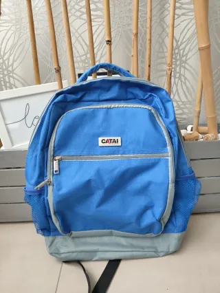 Confezione da due zaini medi. Colore blu con dettagli in grigio. Marca Catái.