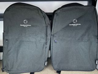 Confezione di due zaini del marchio Tourmundial in colore grigio. Perfette per l'uso quotidiano o per i viaggi. Design moderno e funzionale. Scomparto principale spazioso. Tasca frontale con cerniera. Spallacci regolabili e imbottiti.
