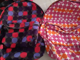 Due zaini piccoli di colore rosso. Design moderno e pratico. Scomparto principale spazioso. Tasca frontale con cerniera. Tasche laterali in rete. Prezzo del pack per ritiro, spedizione aggiuntiva di 3€. Ogni zaino separato costa 3€ in più.