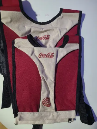 Set di zaini promozionali con design di Burger King e Coca-Cola. - Design bicolore in rosso e beige. - Cinghie regolabili per una maggiore comodità.