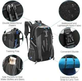 Zaino da escursionismo con un design moderno e funzionale. Perfetto per le tue avventure all'aperto. Zaini disponibili: - modello Jian Feng in Nero - modello Chan Sin in Nero - Scomparti ampi per organizzare i tuoi effetti personali.