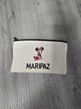 Neceser personalizzato con un divertente design di Minnie Mouse e il nome MARIPAZ. Ideale come regalo. - Stampa di Minnie Mouse. - Nome MARIPAZ stampato. - Chiusura con cerniera. Neceser 3€ Zaino 6€ Fodera per cuscino 7€ Diversi stampati, chiedi e scegli quello che preferisci.