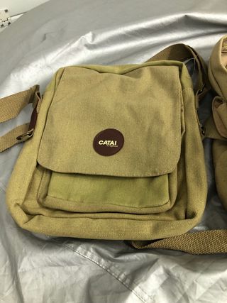Zaini leggeri e impermeabili, molto comodi con diverse tasche chiuse con cerniere. Tasche laterali e manici regolabili. Dimensioni: 32 cm altezza x 27 cm lunghezza x 11 cm profondità. Colori: Verde bosco e marrone chiaro. Prezzo per ciascuno. Nuovi con etichetta.