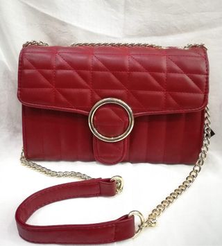 Bellissima borsa a tracolla da donna, colore rosso scuro. - Tracolla regolabile. - Chiusura con fibbia. - Materiale: similpelle.
