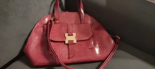 Bella e capiente, a mano e a tracolla. Un bel colore tendente al viola(prima foto abbastanza veritiera). All'interno sono presenti due taschine aperte, una piccola con cerniera e una grande centrale, anch'essa con cerniera. È stata usata pochissimo e si presenta in condizioni più che buone, ma si evidenziano dei piccoli punti di usura, sul davanti, all'attaccatura di un manico e sul fondo, e più importanti nella parte sottostante i manici, tutto evidenziato in foto.