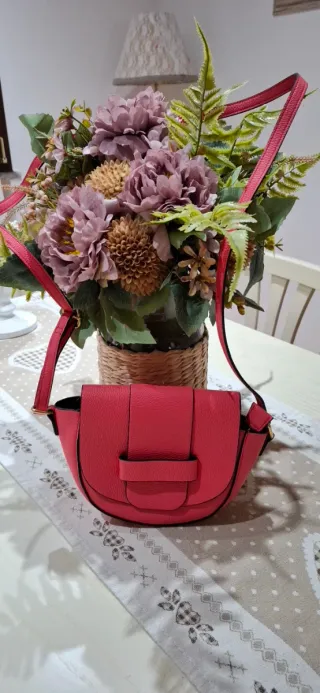 Borsetta da donna nuova, mai utilizzata. - Colore rosso vivace. - Design elegante e compatto. - Chiusura dorata con dettaglio a girello. - Manico superiore rigido. - Tracolla aggiuntiva inclusa.