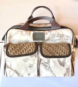Borsa donna Alviero Martini, modello Prima Classe. Presenta un design unico con stampa mappamondo. - Chiusura con zip. - Tasche esterne con dettaglio intrecciato. - Manici in tessuto. - Logo 1A Classe applicato frontalmente.