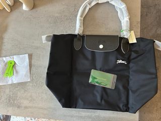 Borsa Longchamp in colore nero, un accessorio elegante e pratico. - Modello Le Pliage Green. - Realizzata in poliammide con finiture in pelle. - Chiusura con zip e bottone a pressione.