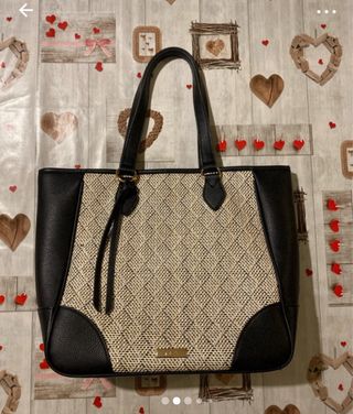 Borsa da donna con un design trapuntato elegante. ellissima borsa Guess, nuovissima!!!!! Elegante,nera,con fibie dorate, ideali per le vostre giornate casual o per i vostri appuntamenti serali. Altezza 33cm, larghezza 39cm e profondità 20cm. In caso di vendita verrà imballata e spedita con cura e professionalità. - Logo Guess sul davanti. - Manici con catena dorata.