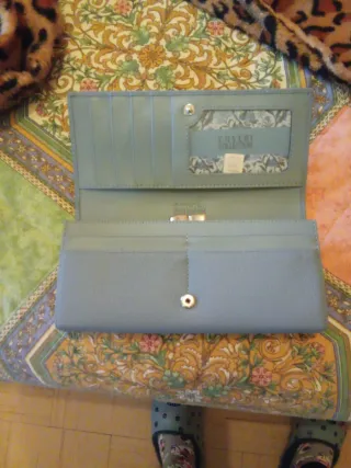 Elegante portafoglio da donna in pelle, firmato Coveri Collection, Nuovo ( prodotto nuovo con cartellino prezzo reale 48€, Scontatissimo) Il portafoglio è molto comodo e pratico con spazio per carte, documenti, banconote e monete. Veramente molto bello ed elegante - Materiale: Pelle - Colore: Azzurro Chiaro