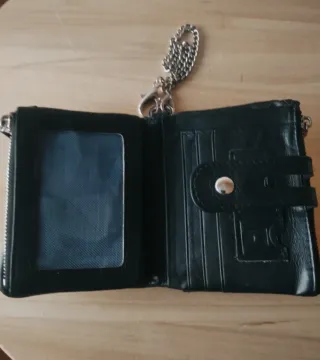 Portafoglio da uomo con design moderno e pratico. Dotato di catena metallica per maggiore sicurezza. L'ho comprato ma non lo uso.