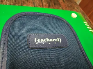 Fondello in tessuto blu del marchio Cacharel. - Chiusura con cerniera. - Design allungato e stilizzato. - Misure chiuso: lunghezza 42, larghezza 14.