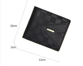Portafoglio elegante da uomo con un design a rilievo a quadri e dettagli geometrici. Materiale: pelle sintetica. Colore: nero. Dimensioni approssimative: 12 cm x 10 cm x 2 cm.