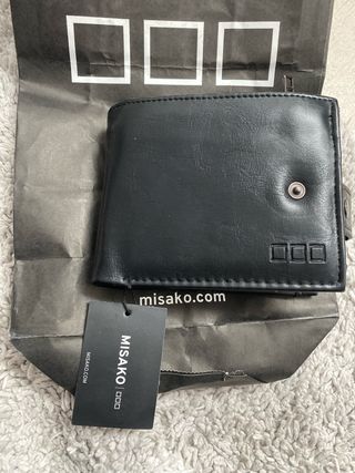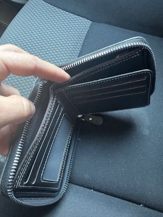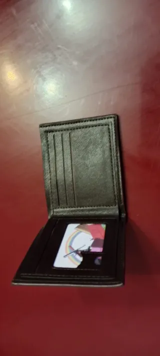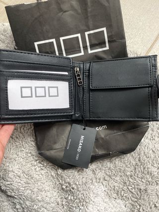 Portafoglio da tasca. Principalmente per uomini. Dimensioni: 10 x 11 cm. Colore nero con texture. Mai usato. Pelle sintetica. Molti scomparti (vedi foto). Ritiro a Santa Eugenia (Madrid) o spedizione tramite walapop.