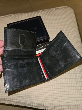 Elegante portafoglio del marchio Tommy Hilfiger. Dimensioni 11 cm x 9 cm. - Portafoglio in pelle. - Protezione RFID. Tecnologia che blocca le onde di radiofrequenza per evitare il furto di dati da carte con chip (credito, debito, passaporti, ecc.).