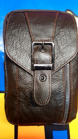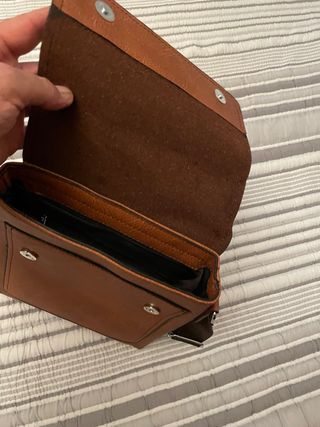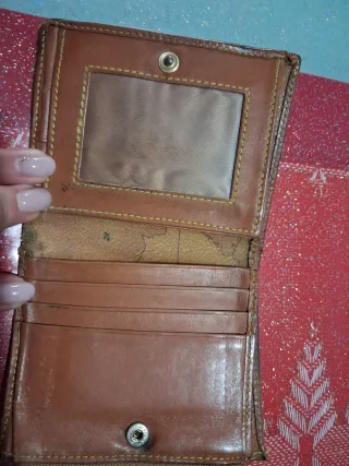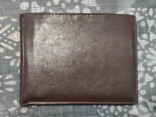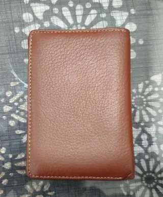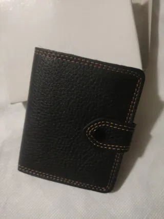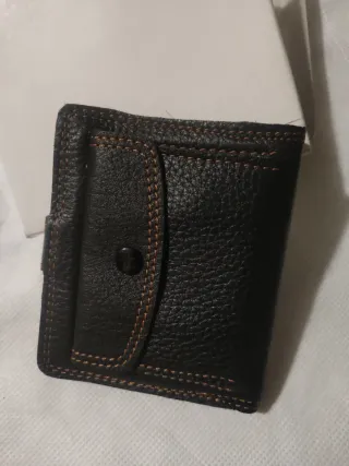 Portafoglio da tasca. Principalmente per uomini. Dimensioni: 12 x 9,3 cm. Colore marrone scuro. Pelle sintetica. Più scomparti (vedi foto), con portamonete con chiusura a bottone. Mai usato. Ritiro a Santa Eugenia (Madrid) o spedizione tramite walapop.