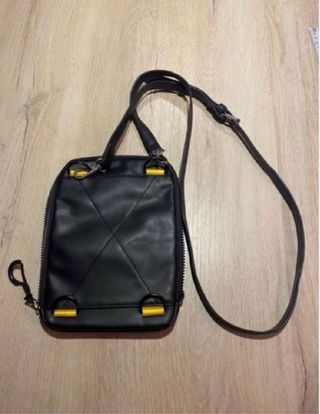 Borsa a tracolla Zara da uomo in colore nero. Design moderno e pratico. - Scomparto principale con chiusura a zip. - Due tasche frontali con bottone a pressione. - Cinturino regolabile per portare incrociato o a spalla.