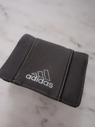 Portafoglio Adidas grigio con chiusura a zip. - Design moderno con dettagli a zip. - Logo Adidas stampato sul davanti.