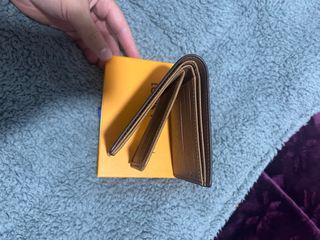 Set di portafoglio e portachiavi. Dimensioni: 11 x 9,5 cm. Colore marrone con cuciture decorative gialle e arancioni. Mai usati. Pelle sintetica. Molti scomparti (vedi foto). Portachiavi abbinato. Ritiro a Santa Eugenia (Madrid) o spedizione tramite walapop.