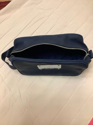Borsa da toilette del marchio Voyageur, ideale per uomo. Il suo design è elegante e pratico. Colore blu navy. Placca metallica con logo del marchio.