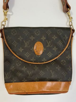 Bolso Louis Vuitton vintage en color marrón con el clásico monograma y detalles en marrón más claro. Diseño con tapa frontal, un solo asa y bolsillo interno, práctico y funcional. Un modelo muy retro, elegante y atemporal de piel