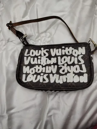 Borsa Louis Vuitton con iconico monogram edizione limitata per Stephen Sprouse anno 2001 - Colore marrone. - Design con scritte bianche. - Tracolla in pelle. Cerniera guasta da sostituire Assenza chiusura gancio da uno dei due lati