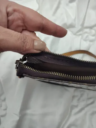 Piccola borsa in vera pelle Louis Vuitton. Design testurizzato. Dettagli metallici dorati. Chiusura con cerniera.