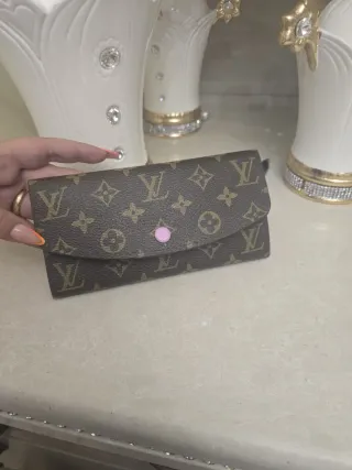 Elegante portafoglio della rinomata marca Louis Vuitton. Design classico in tonalità marrone. Chiusura con bottone a pressione.
