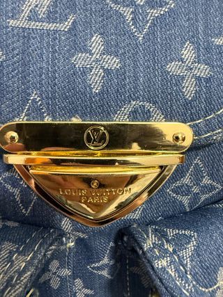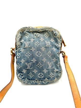 Il Louis Vuitton Danube Pochette in denim Monogram è una borsa a tracolla iconica che unisce stile casual e sofisticatezza. Realizzato in tela di jeans blu con Monogram ricamato, dettagli in pelle naturale e hardware dorati, si distingue per il suo aspetto vintage e disinvolto. Dimensioni 19 × 23 × 7 cm. Dotato di tasca frontale con patta, interno foderato in velluto color caramello e tracolla regolabile per essere indossato a spalla o a tracolla. Ottime condizioni, con segni di utilizzo visibili che ne sottolineano il carattere autentico.